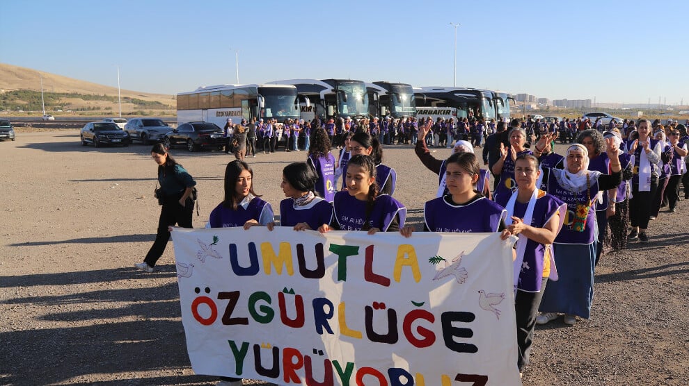 Özgür Kadın Hareketi (Tevgera Jinên Azad-TJA) tarafından “Umutla özgürlüğe yürüyoruz” şiarıyla Amed’den başlatılan yürüyüş 6’ncı gününde Ankara’ya ulaştı. Geçtikleri her kentte büyük coşku ile karşılanan kadınlar Ankara’da bulunan Sincan Kapalı Hapishanesine doğru yürümeye başladı. Kadınlar, “Mafê Hêviyê Mafê Gelan e”, “Bijî Serok Apo”, “Bijî Berxwedana Zindana” ve “Jin, Jiyan, Azadî, Azad Bike Rêbertî” sloganları eşliğinde Sincan Ceza İnfaz Kurumları Kampüsüne kadar yürüdü.